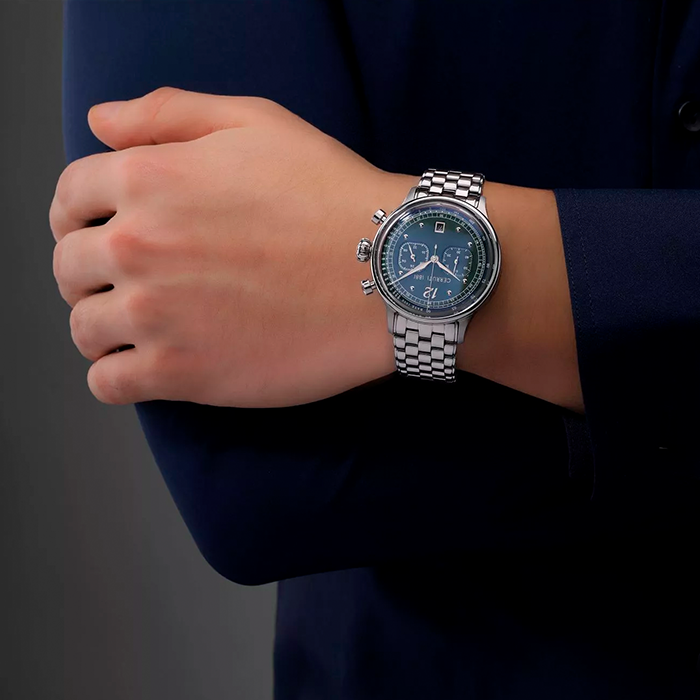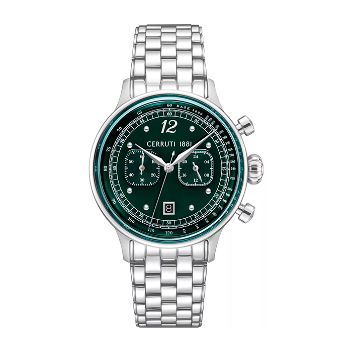 Часы Dervio, сочетающие в себе нотки сюрреалистической элегантности и классического стиля, придают общему дизайну вневременную привлекательность. Зелёный эмалевый циферблат, заключенный в куполообразное стекло, придает часам четкую привлекательность, подчеркивая доминантность дизайна. Благодаря двум дополнительным циферблатам и окошку даты, эти часы-хронограф обеспечивают 24-часовой формат времени, 60-секундный индикатор и функцию отображения даты. Металлический браслет и граненая заводная головка гармонично дополняют часы, добавляя им нотку винтажной роскоши.