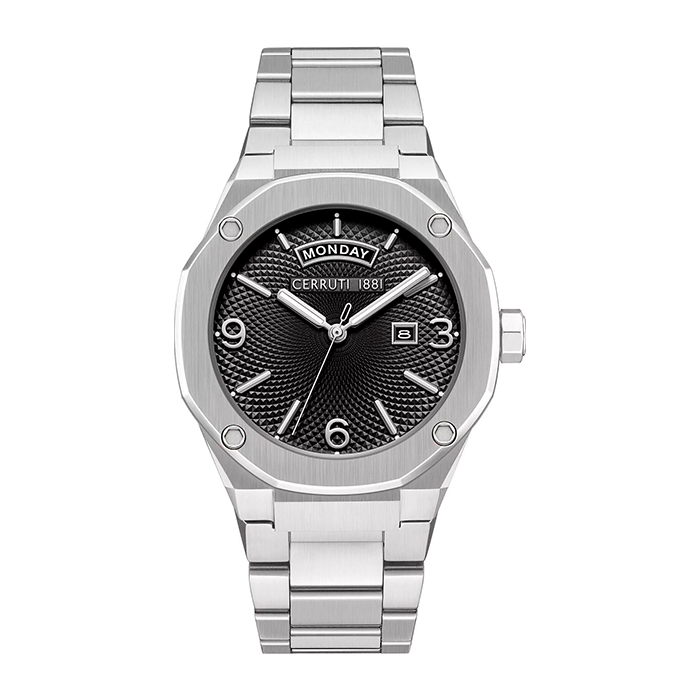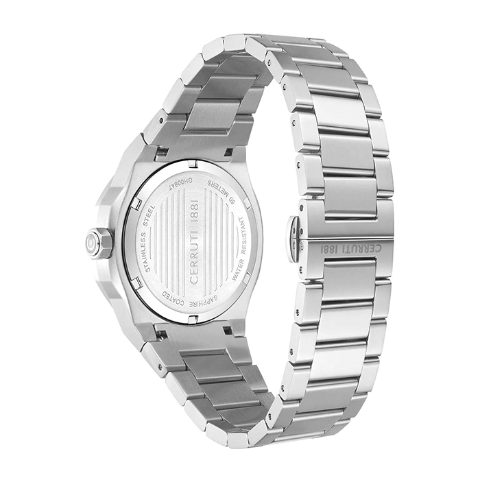 Cerruti 1881 Razzuolo CIWGH0084701 — мужские часы в классическом сочетании серебристого корпуса и браслета из нержавеющей стали с контрастным чёрным циферблатом. Часы оснащены кварцевым механизмом и минеральным стеклом с сапфировым покрытием.