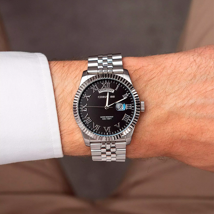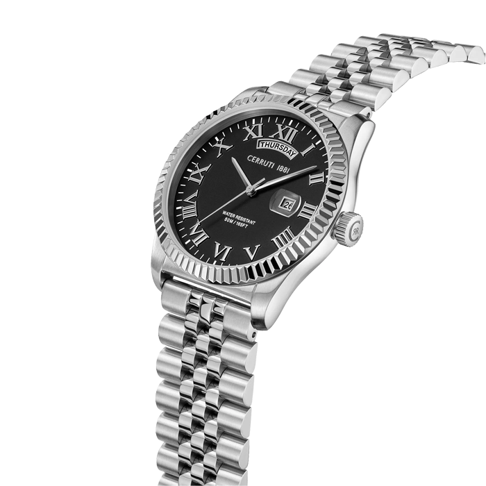Мужские часы Cerruti 1881 Classic CIWGH2117116 сочетают в себе современный стиль и классический вид. Серебристый корпус из нержавеющей стали шириной 41 мм придаёт часам солидный вид. Чёрный циферблат покрыт минеральным стеклом, обеспечивающим защиту. Водонепроницаемость часов составляет до 50 метров, что делает их устойчивыми к небольшим брызгам. Серебряный браслет, также выполненный из нержавеющей стали, идеально сочетается с общим стилем, подчёркивая его стиль. Эти часы идеально подойдут мужчинам, ценящим функциональность и модный дизайн.