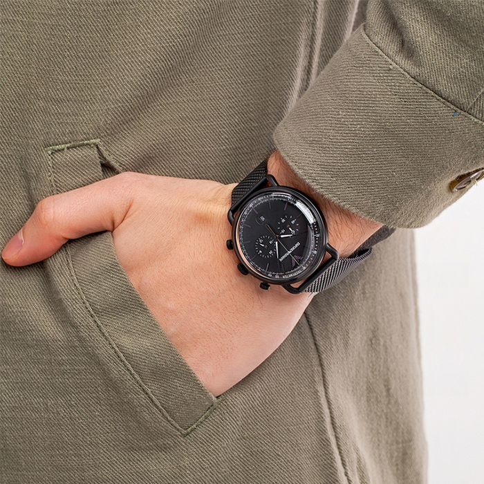 Стильный мужской хронограф в стальном корпусе будет прекрасным партнером в вопросах времени. Отличный выбор для подарка мужчине. Aviator. Часы-хронограф с секундомером и тахиметром. Браслет миланского плетения.