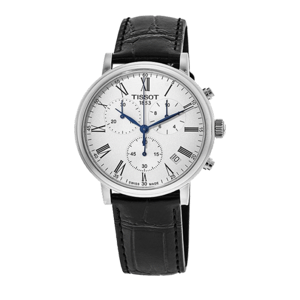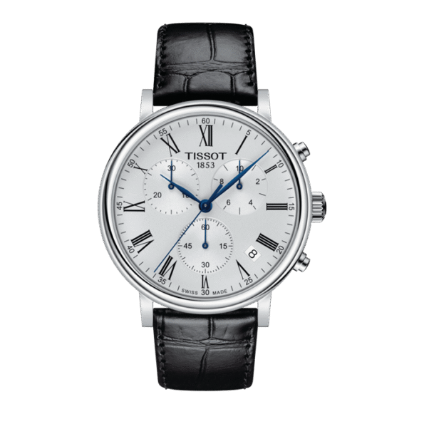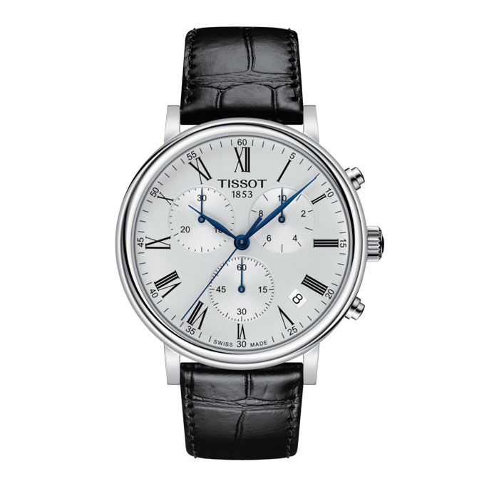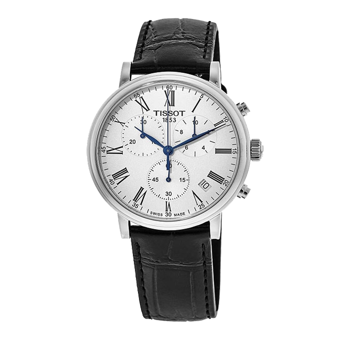 Часы Tissot Carson — это вещь вне времени, которая подойдет для любого времени и места. Откройте для себя новый дизайн с циферблатами, которые остаются чистыми и классическими, подчеркнутыми тонкими изогнутыми стрелками и римскими цифровыми индексами, а также элегантным изгибом двойного безеля gadroon. Эта коллекция предлагает редкое для классических часов сочетание простоты и элегантности. Состоящие из трех основных счетчиков, характерных для базового хронографа, эти часы могут использоваться не только для отображения времени, но и в качестве секундомера. T-Classic Carson Premium Chronograph. Мужские наручные часы-хронограф с секундомером. В механизме 4 камня. Функция индикации заряда (EOL). Круглый стальной корпус c полированной поверхностью. Узкие листовидные стрелки в стиле Feuille. Метки в виде римских цифр. Окошко даты находится между часовыми отметками 4 и 5. Рифленая заводная головка. Удобный кожаный ремешок с классической застежкой.