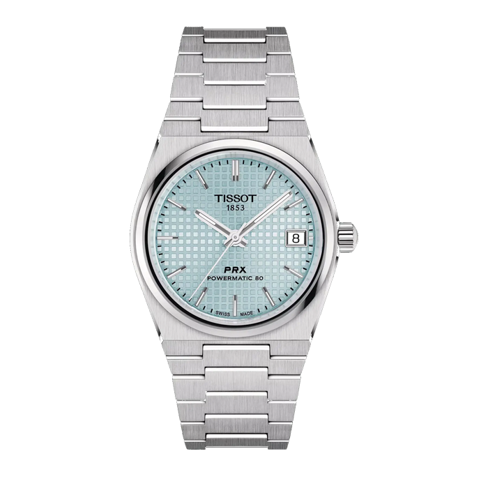 Практичные часы отражающие характерный стиль 70-х годов. Идеальные часы для ценителей ретро-дизайна. Наручные мужские часы PRX Powermatic 80. В механизме 23 камня, частота 21600 полуколебаний в час. Запас хода 80 часов. Запатентованная пружина баланса Nivachron. Стальной корпус c сатинированной поверхностью. Накладные метки в виде штрихов. Метки и стрелки с люминесцентным покрытием, которое светится в темноте после непродолжительной зарядки на свету. Окошко даты находится в положении 3 часа. Рифленая заводная головка. Прозрачная задняя крышка. Надежный стальной браслет с раскладывающейся застежкой и системой быстрой замены.