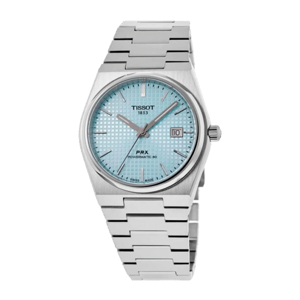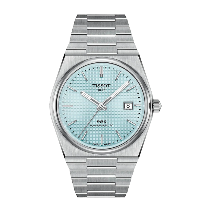 Практичные часы отражающие характерный стиль 70-х годов. Идеальные часы для ценителей ретро-дизайна. Наручные мужские часы PRX Powermatic 80. В механизме 23 камня, частота 21600 полуколебаний в час. Запас хода 80 часов. Запатентованная пружина баланса Nivachron. Стальной корпус c сатинированной поверхностью. Накладные метки в виде штрихов. Метки и стрелки с люминесцентным покрытием, которое светится в темноте после непродолжительной зарядки на свету. Окошко даты находится в положении 3 часа. Рифленая заводная головка. Прозрачная задняя крышка. Надежный стальной браслет с раскладывающейся застежкой и системой быстрой замены.