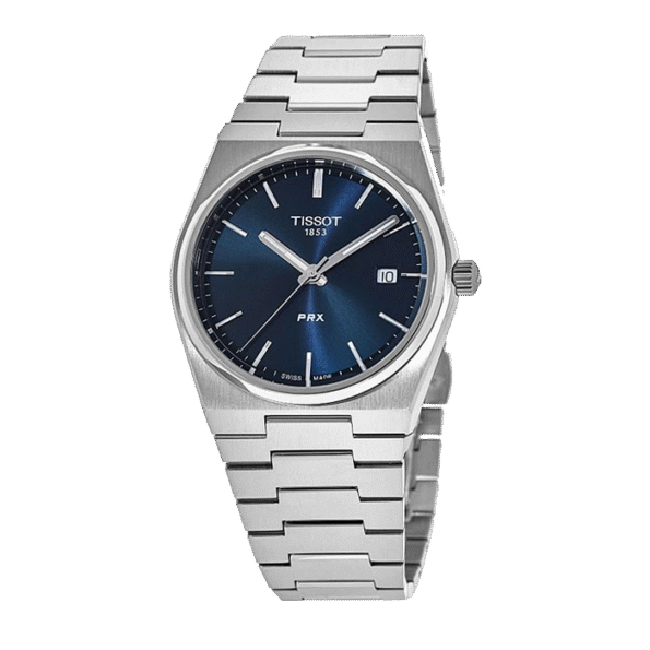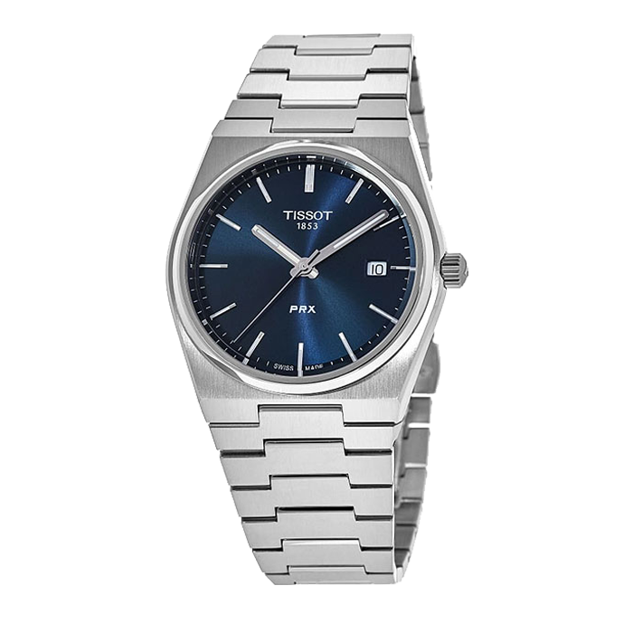 В 1978 году родилась модель Tissot PRX, а в 2021 году мы празднуем ее возвращение. Новые часы Tissot PRX — это часы для тех, кто страстно любит этот дизайн. Познакомьтесь с новой моделью Tissot PRX прямо сейчас. Выразительный и тонкий дизайн делает ее бескомпромиссно необходимой для всех любителей этого дизайна. PRX. Водонепроницаемые кварцевые наручные часы. В механизме 3 камня. Функция индикации заряда (EOL). Бочкообразный стальной корпус c сатинированной поверхностью. Циферблат выполнен по технологии Sunray (солнечные лучи). Прямоугольные стрелки в стиле Baton. Метки в виде штрихов. Метки и стрелки с люминесцентным покрытием, которое светится в темноте после непродолжительной зарядки на свету. Окошко даты находится в положении 3 часа. Рифленая заводная головка. Надежный стальной браслет с застежкой-бабочкой и системой быстрой замены.