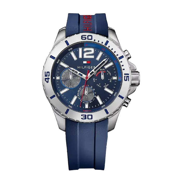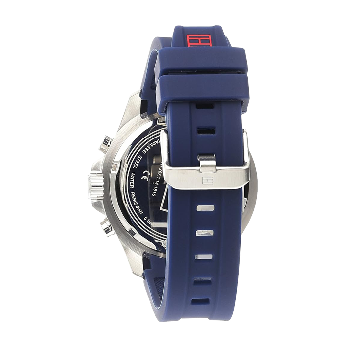 Синий каучуковый ремешок с застежкой из нержавеющей стали.